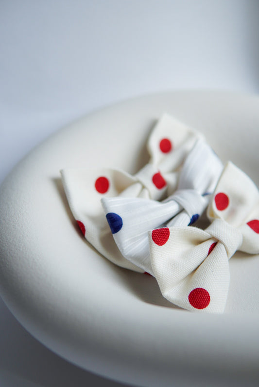 Våra rosetter är handgjord i Finland av återanvända tyger. Rosetterna finns i två storlekar och är lätta att fästa på ditt husdjurs halsband.