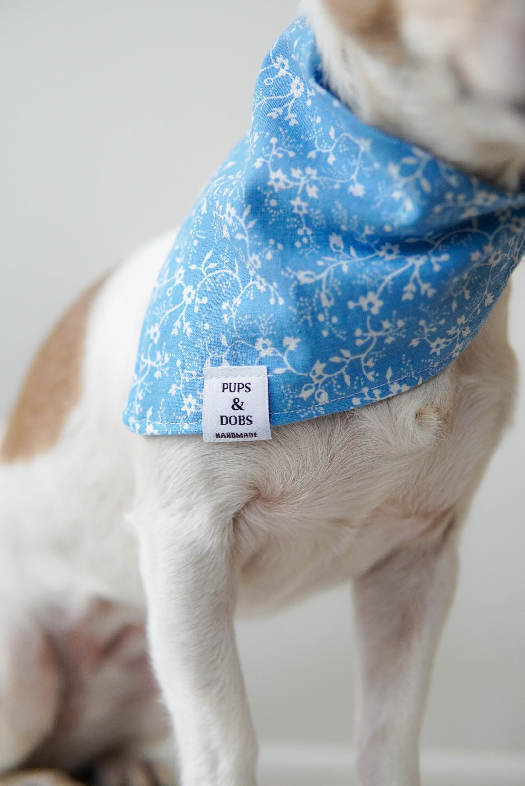Alla våra bandanas är handgjorda i Finland. Våra bandanas är gjorda med en scrunchie-del i nacken. Scrunchie-delen innehåller ett elastiskt band, som gör bandanan mer flexibel och gör det enkelt för din hund att bära utan att behöva ha ett halsband.