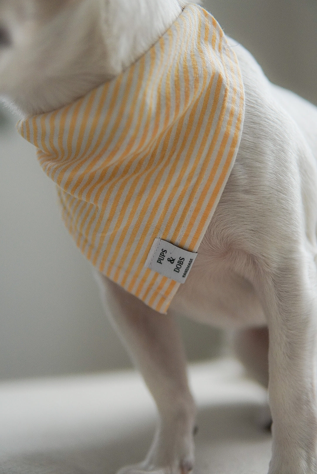 Alla våra bandanas är handgjorda i Finland. Våra bandanas är gjorda med en scrunchie-del i nacken. Scrunchie-delen innehåller ett elastiskt band, som gör bandanan mer flexibel och gör det enkelt för din hund att bära utan att behöva ha ett halsband.