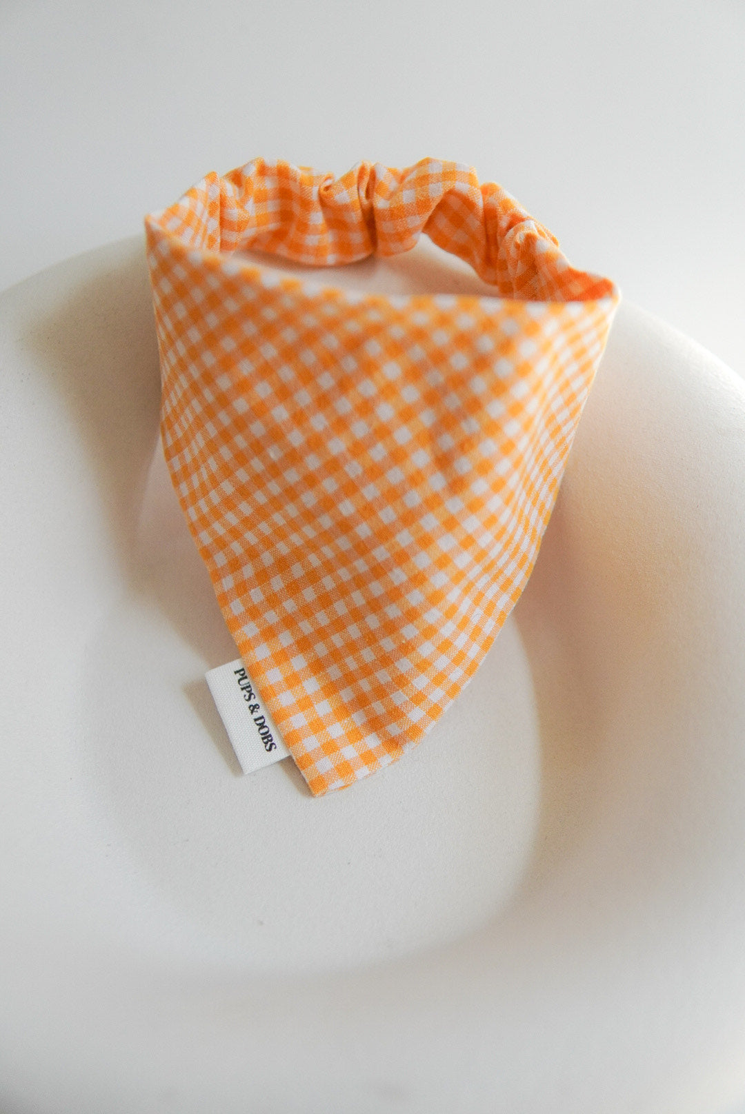 Alla våra bandanas är handgjorda i Finland. Våra bandanas är gjorda med en scrunchie-del i nacken. Scrunchie-delen innehåller ett elastiskt band, som gör bandanan mer flexibel och gör det enkelt för din hund att bära utan att behöva ha ett halsband.