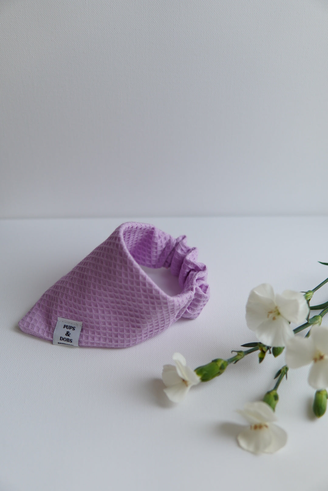 Alla våra bandanas är handgjorda i Finland. Våra bandanas är gjorda med en scrunchie-del i nacken. Scrunchie-delen innehåller ett elastiskt band, som gör bandanan mer flexibel och gör det enkelt för din hund att bära utan att behöva ha ett halsband.