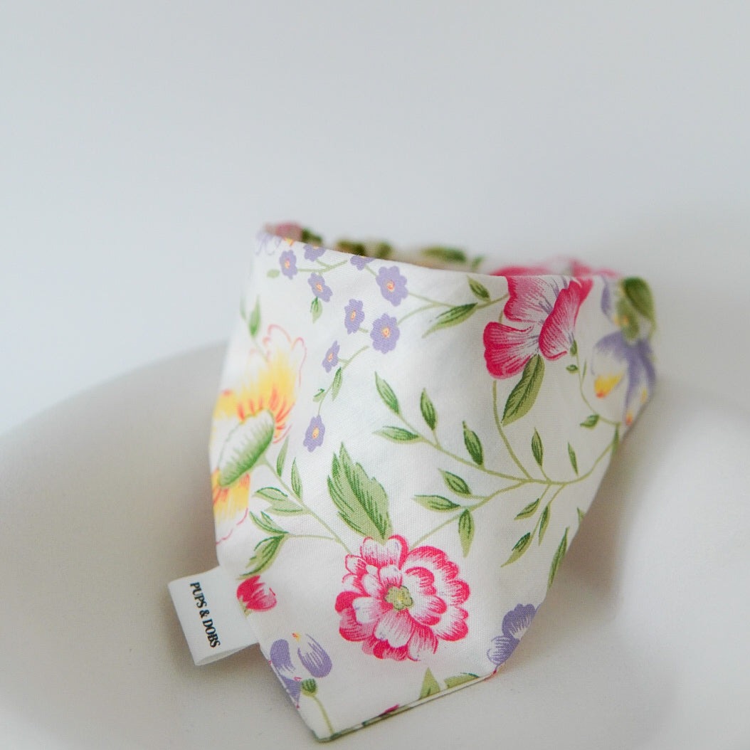 Alla våra bandanas är handgjorda i Finland. Våra bandanas är gjorda med en scrunchie-del i nacken. Scrunchie-delen innehåller ett elastiskt band, som gör bandanan mer flexibel och gör det enkelt för din hund att bära utan att behöva ha ett halsband.