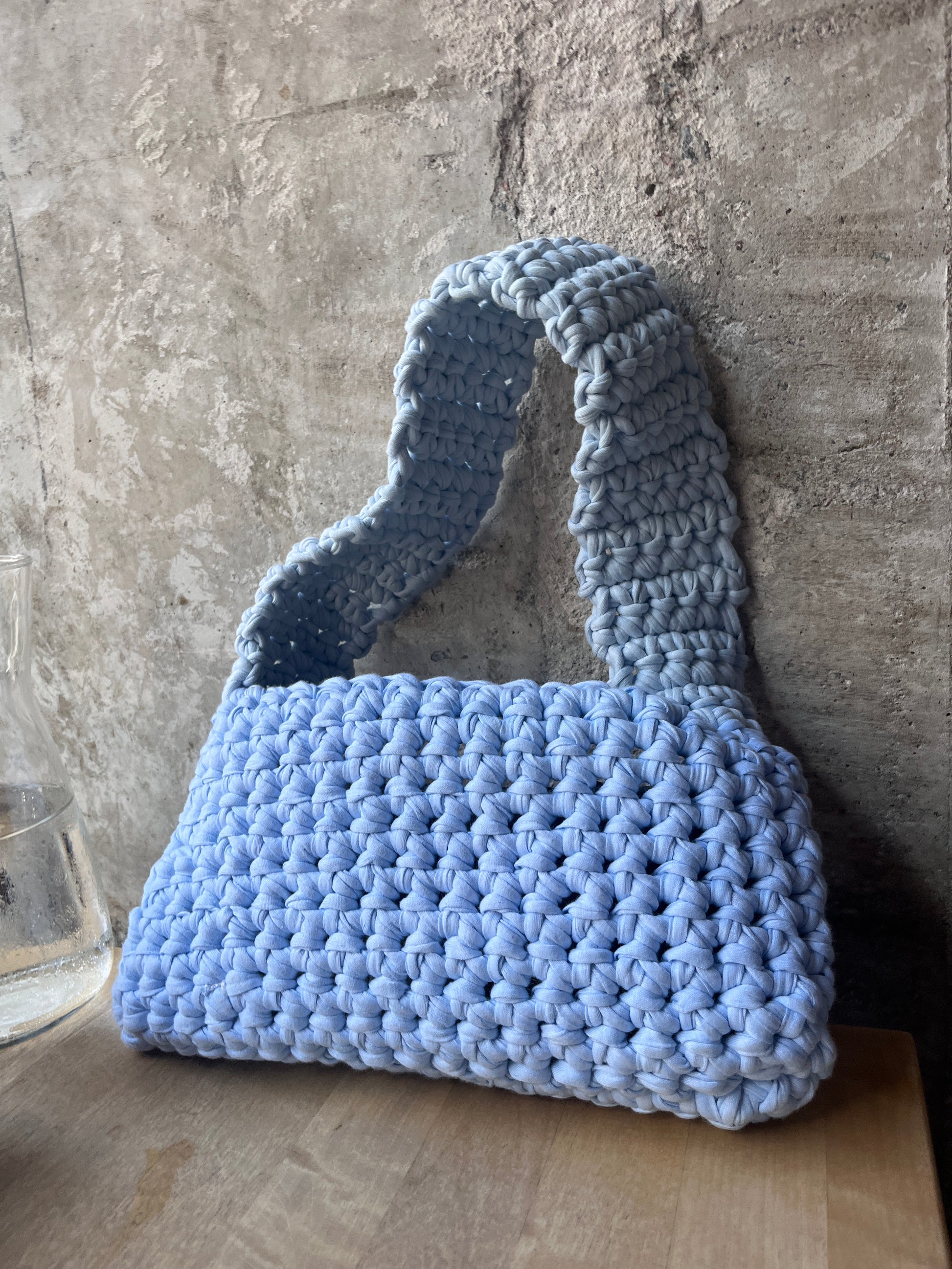 Virkad väska - Babyblå