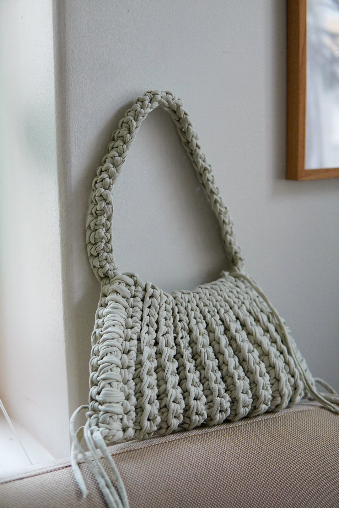 : Väskorna är gjorda av återvunnet t-shirtgarn från textilavfall från europeiska modefabriker.