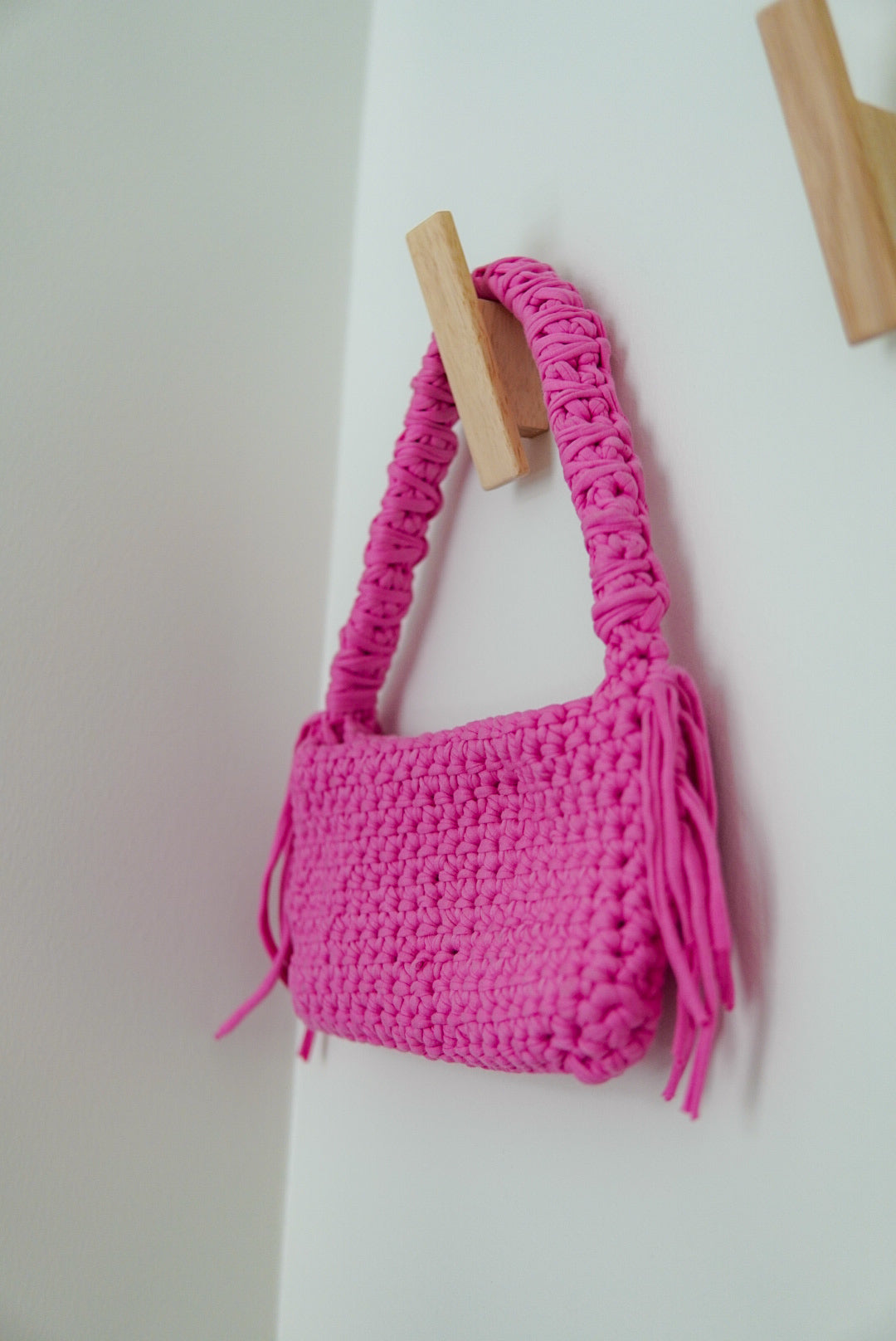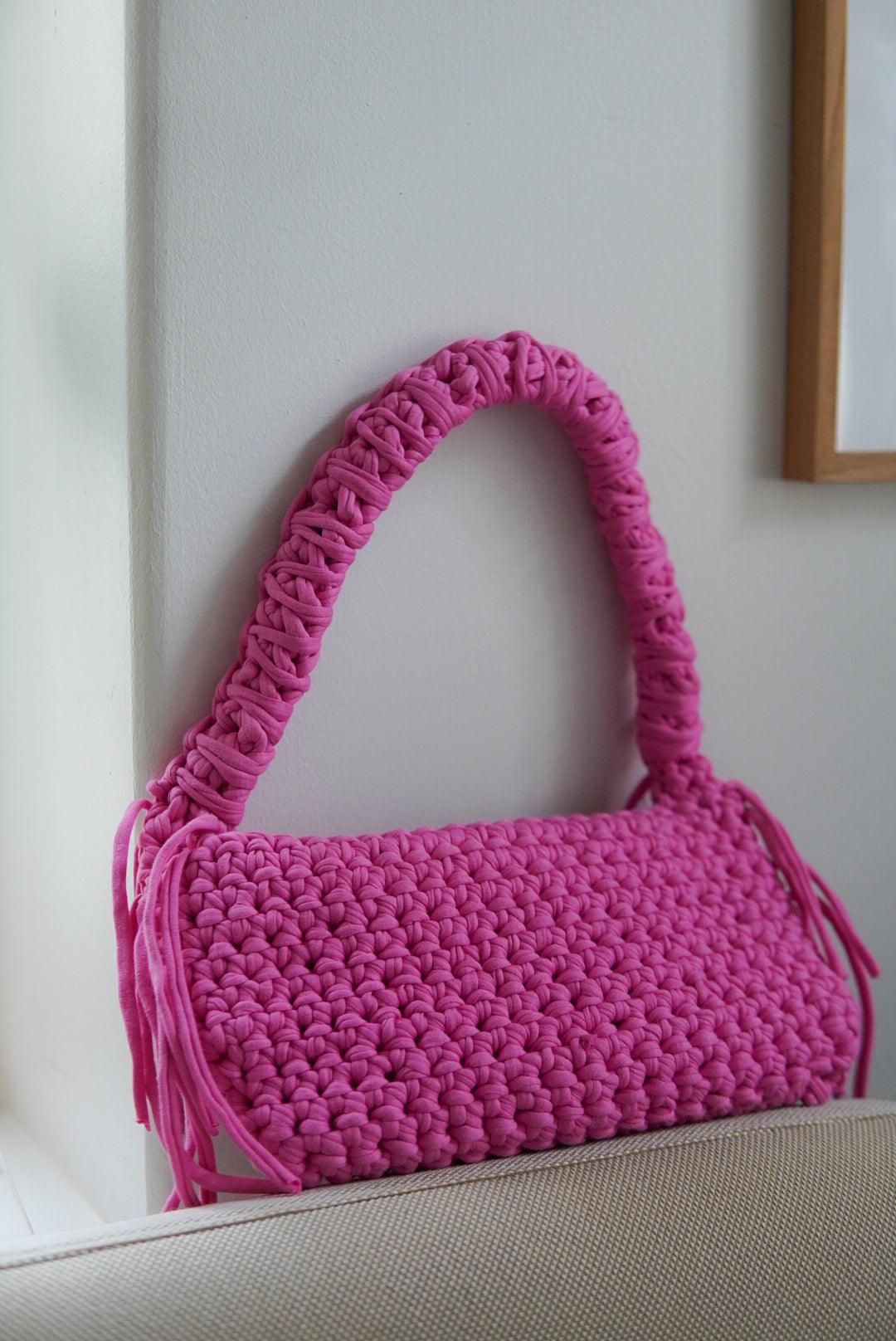 : Väskorna är gjorda av återvunnet t-shirtgarn från textilavfall från europeiska modefabriker.
