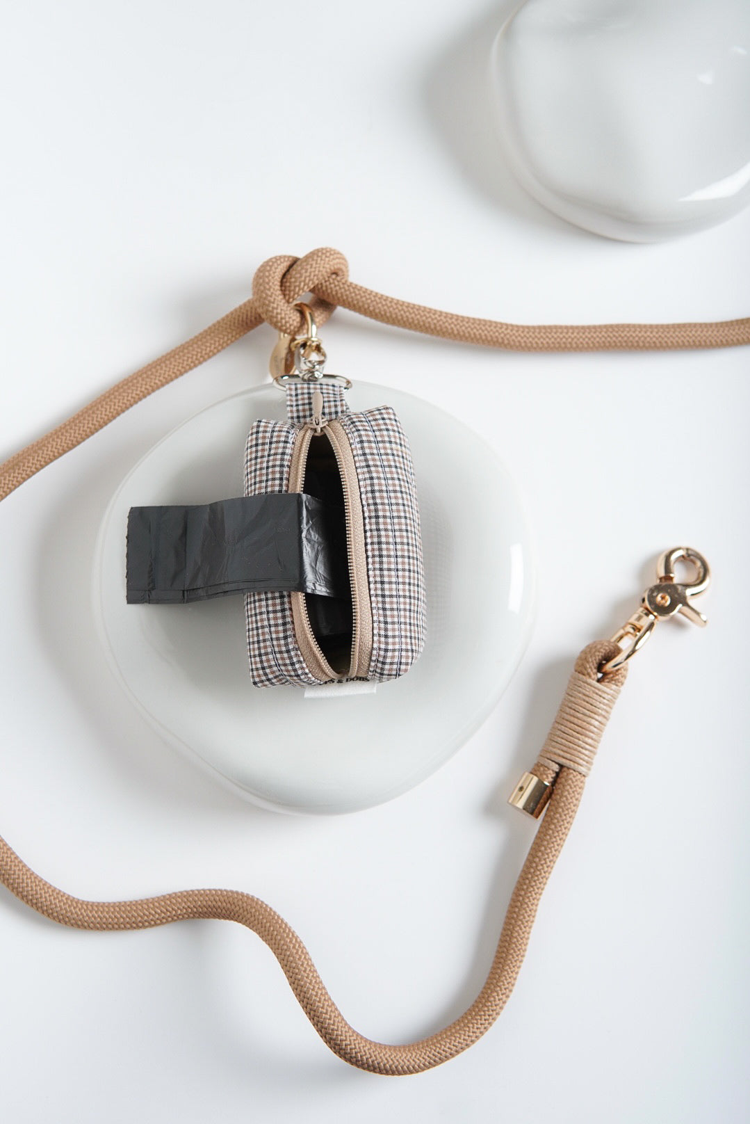 Gör promenaderna med din fyrbenta vän ännu härligare med vårt exklusiva koppel- och bajspåsehållar-set! Den perfekta kombinationen innehåller ett slitstarkt, stilrent handsfree-koppel och en praktisk, handgjord bajspåsehållare – designade för att göra dina dagliga promenader enklare och renare.