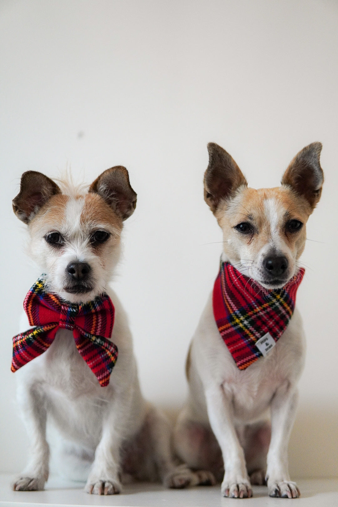 Our bows comes in two different sizes The bows comes with two elastic loops attached at the back of the bow, so you can easily slide your dogs collar through the elastic loops.